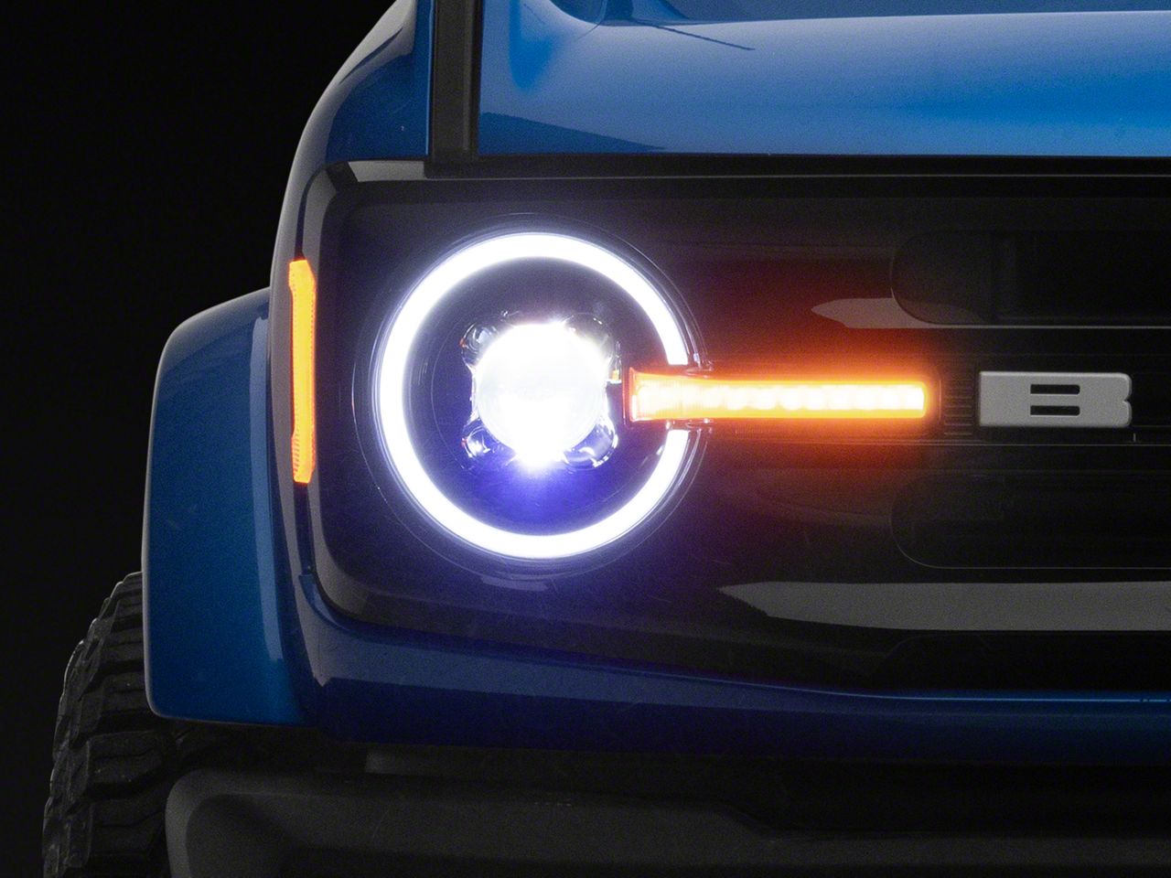Application. This Rough Country DRL Halo LED Headlights fits 2021-2026 Bronco.