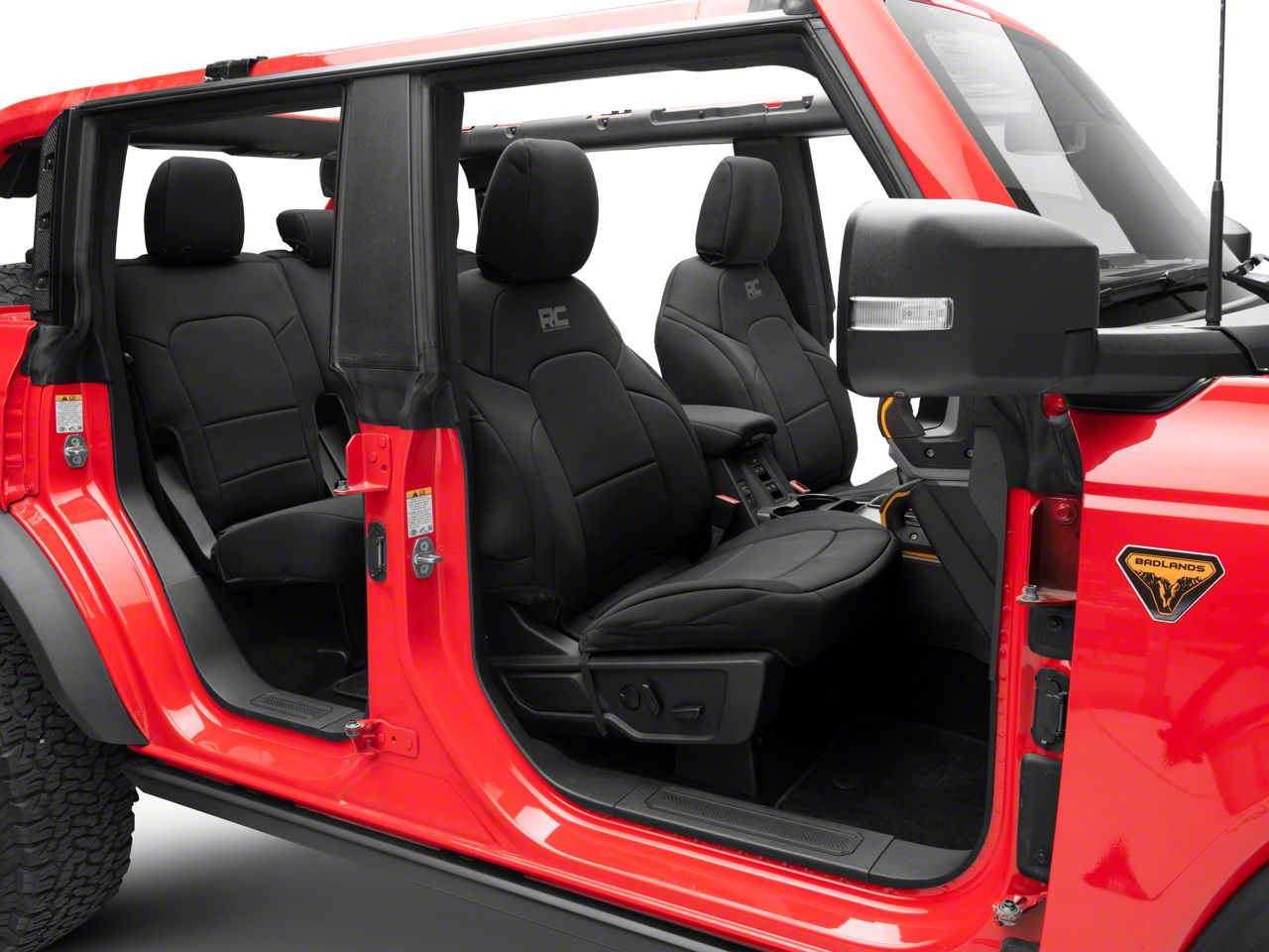 Application. The Rough Country Neoprene Front and Rear Seat Covers; Black fits all 2021-2026 Ford Bronco 4-Door models.