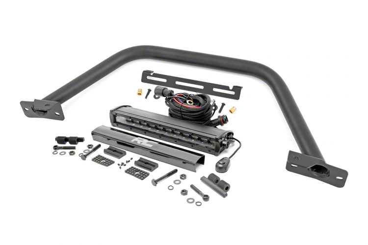Heavy-Duty Protection. The Rough Country Safari Bar Kit with 12-Inch Black Series Single Row LED Light Bar enhances the front-end of the Ford Bronco by providing additional protection against off-road hazards while offering versatile lighting solutions. Designed for off-road enthusiasts, this kit allows you to equip your Bronco with superior lighting and rugged styling for enhanced trail capability and aesthetic appeal.