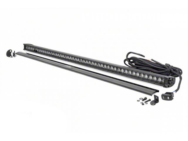 Cutting-Edge Features. Illuminate the road ahead like never before with the Rough Country 50-inch Black Series Single Row Cool White DRL LED Light Bar. This cutting-edge light bar features a sleek black panel design and a spot-beam pattern, perfect for focused, long-range lighting. With 48 high-intensity 5W CREE LEDs, it delivers an astounding 19,200 lumens output to light up even the darkest trails.