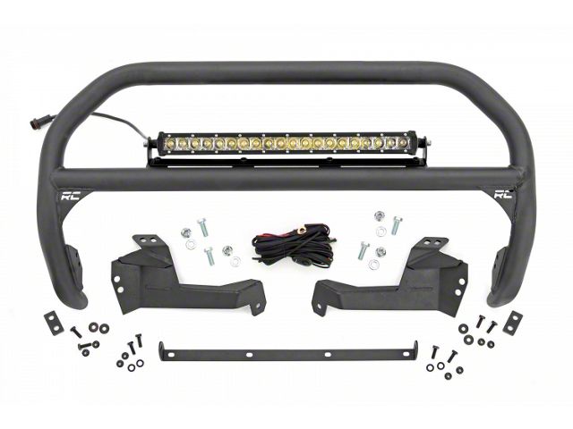 Description. Outfit your Bronco Sport right with Rough Country's Bumper Light Mount Bar. This durable 2-inch thick tubular steel bar is coated with corrosion-resistant black powder coat providing great looks while offering multiple LED mounting solutions for the front of your vehicle.