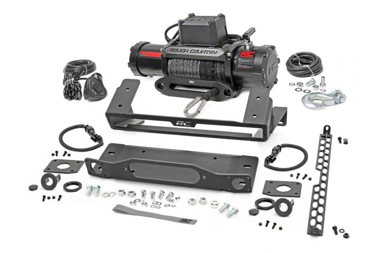 Maximized Hauling Utility. This Rough Country Winch Mount with PRO12000S Winch is the ultimate solution for all your off-road and recovery needs. With a 12,000-pound weight capacity, it can easily handle even the toughest pulls, ensuring it can withstand the toughest conditions. Whether you're stuck in the mud, need to tow a vehicle, or just need to move heavy equipment, this winch kit has you covered.