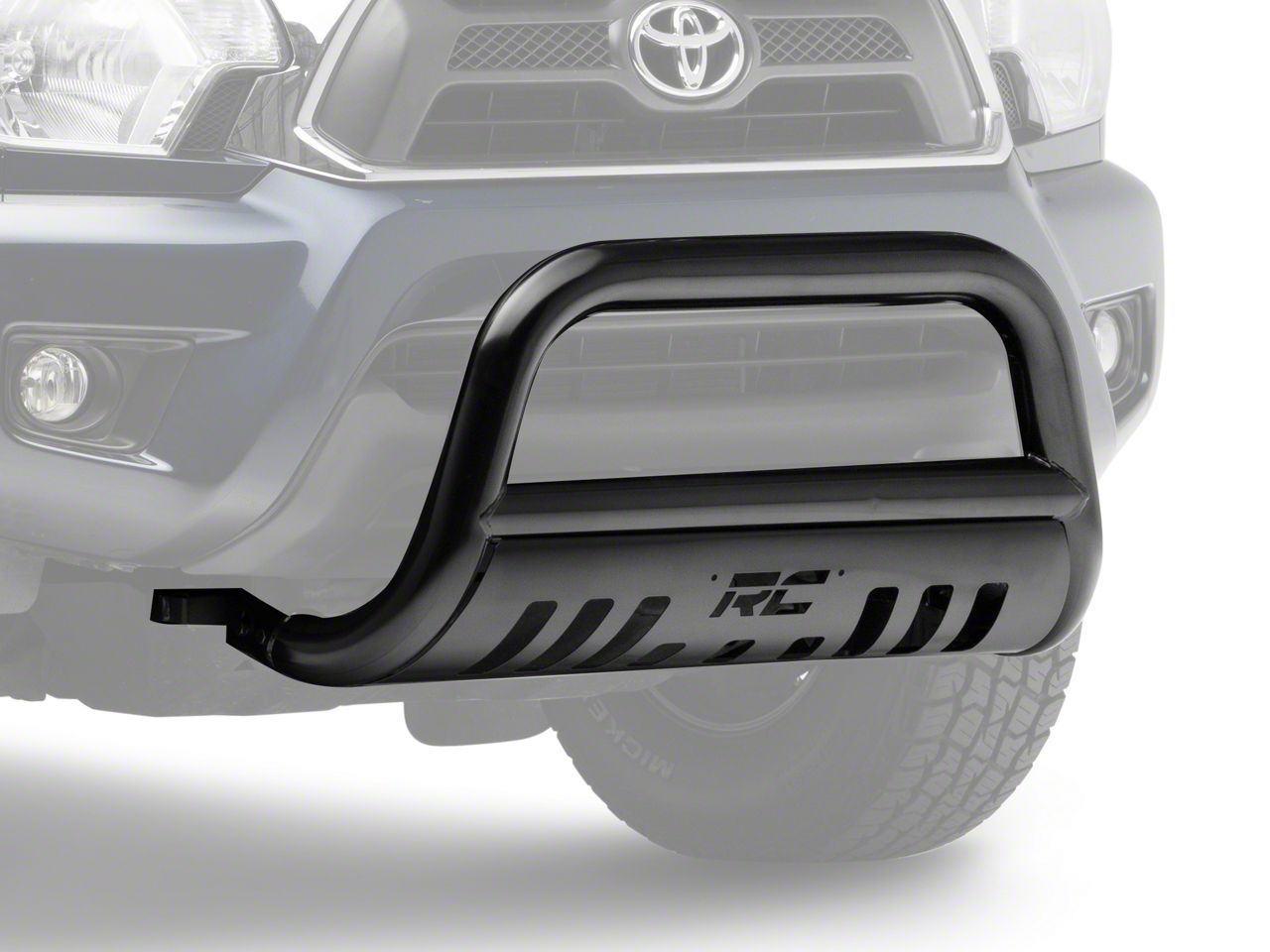 Application. The black Rough Country Bull Bar will fit all Toyota Tacoma models manufactured from 2005 to 2015.