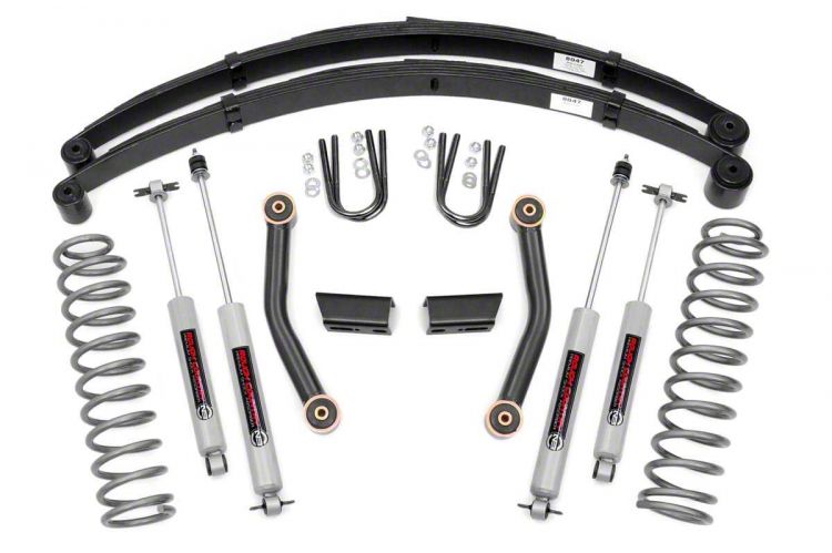 Heavy-Duty Aluminum Composition. Bulwarked for the outdoors, the Rough Country 3-Inch Series II Suspension Lift Kit with Leaf Springs and Premium N3 Shocks can easily handle heavy hits thanks to its durable aluminum composition, guaranteeing extreme durability no matter where you go.