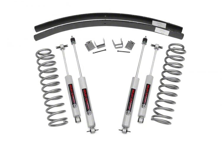 Superior Cruising. Elevate your off-road experience to new heights with the Rough Country 3-Inch Suspension Lift Kit with Add-A-Leafs and Premium N3 Shocks for your Jeep Cherokee XJ. It combines premium components to provide you with the ultimate off-road upgrade, ensuring both superior performance and a ruggedly aggressive look. Paired with the Add-A-Leafs are the Premium N3 Shocks, specially tuned to deliver exceptional dampening and control. These high-performance shocks work in harmony with the suspension components, absorbing impacts and reducing body roll, so you can navigate rough trails with precision and stability.