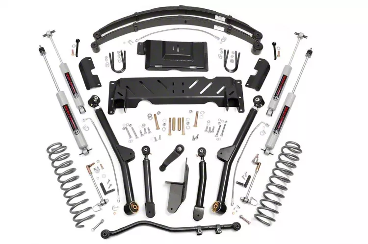 Reliable Functionality. With its 4.5 inches of lift, the Rough Country 4.50-Inch Long Arm Suspension Lift Kit adds a commanding presence to your ride while also increasing ground clearance. The kit is designed with long arms for better stability and articulation, making it ideal for off-roading adventures. Despite the lift, this kit maintains the original ride quality, ensuring that your driving experience is smooth and comfortable.