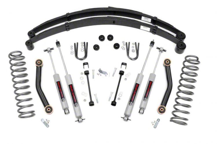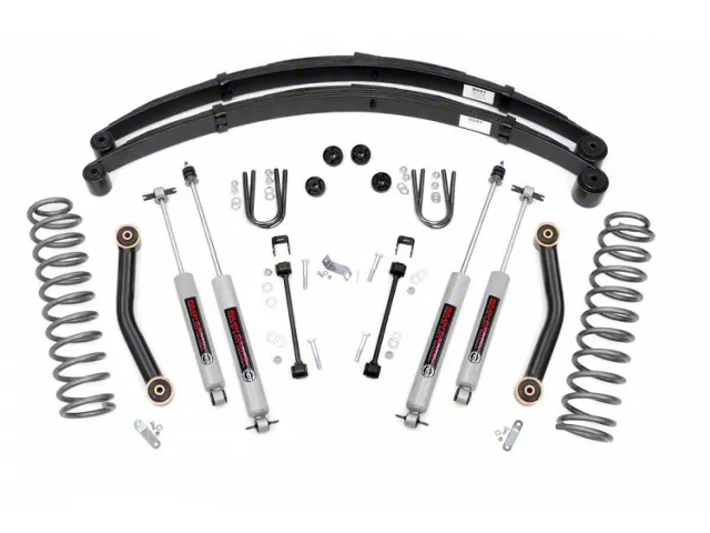 Application. This Rough Country 4.50-Inch Suspension Lift Kit with Leaf Springs and Preminum N3 Shocks fits 1984-2001 Jeep Cherokee XJs without AX5 Transmission.