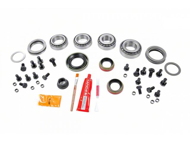 This kit includes a set of carrier bearings and races, pinion bearings and races, pinion seal, ring gear bolts, deluxe shim kit, pinion nut, crush sleeve (select models) oil baffle and slingers (select models), thread locking compound, marking compound, brush and gasket sealing compound.