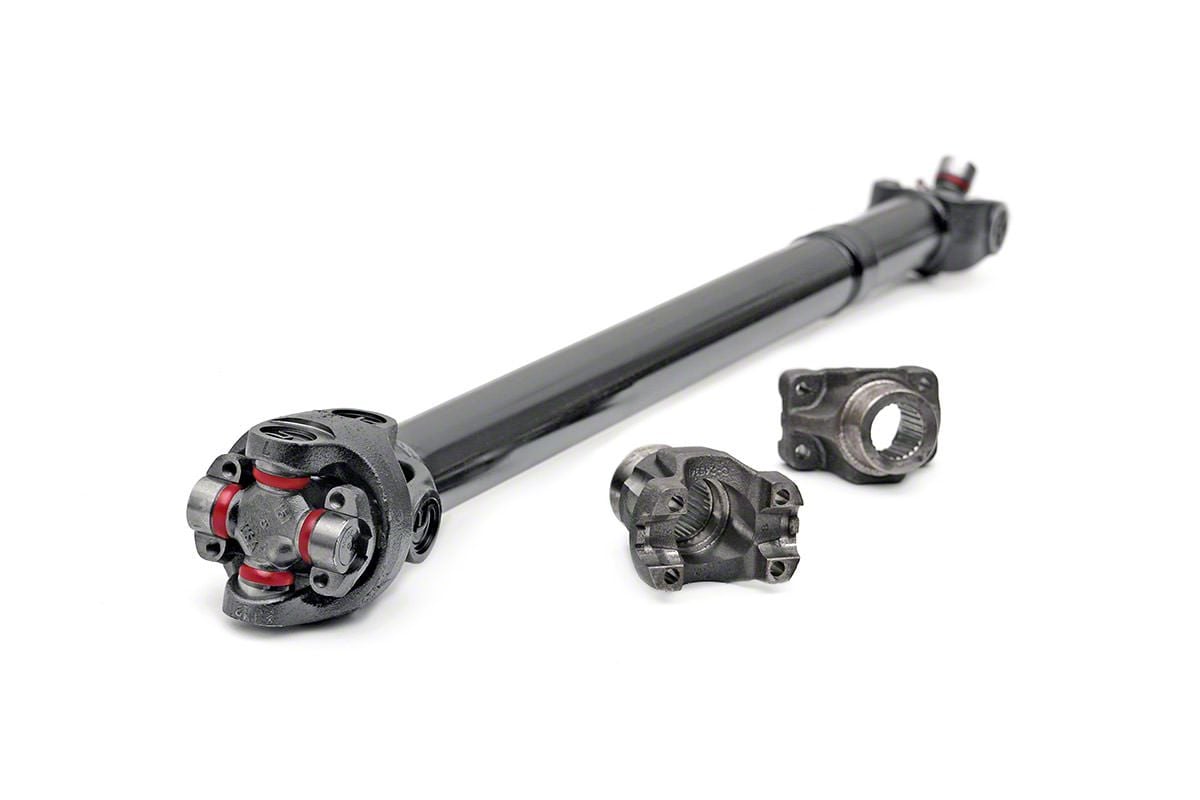 Integral Performance. The Rough Country CV Rear Driveshaft for 3.50-6-inch Lift delivers outstanding torque management for your Wrangler, allowing you to better control your Wrangler under harsh terrain by propelling transmitting torque from the engine to your wheels. It also helps keep your stock driveshaft and oil pan from knocking on automatic transmissions.