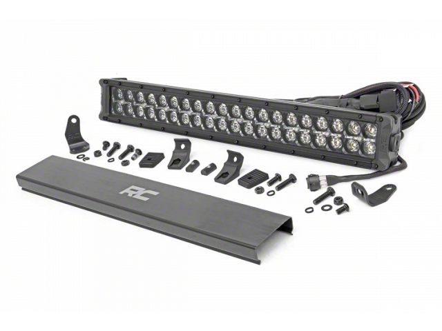 Reliable Illuminating Power. Illuminate your off-road adventures with the Rough Country 20-Inch Black Series Dual Row Amber DRL LED Light Bar; Flood/Spot Combo Beam. This high-performance lighting solution is designed to provide superior illumination, enhancing visibility and safety in all driving conditions. It boasts a dual-row design that houses powerful LEDs, delivering a potent flood/spot combo beam. This ensures a wide area of coverage and a focused beam of light for precise, far-reaching illumination.