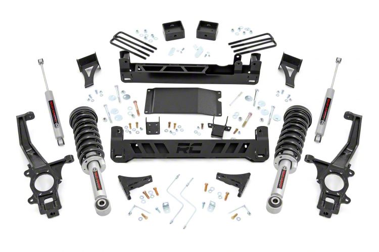 Conquer with Confidence. The Rough Country 6-Inch Suspension Lift Kit with Lifted N3 Struts is the ultimate solution for enhancing your vehicle's performance and style. With a lift height of 6 inches, this kit provides an impressive boost in ground clearance, allowing you to conquer off-road terrain with ease. Equipped with nitrogen-charged N3 shocks, this suspension lift kit ensures exceptional stability and smoothness, absorbing bumps and shocks for a comfortable ride. By maintaining the factory track width, your vehicle retains its original handling and stability characteristics.
