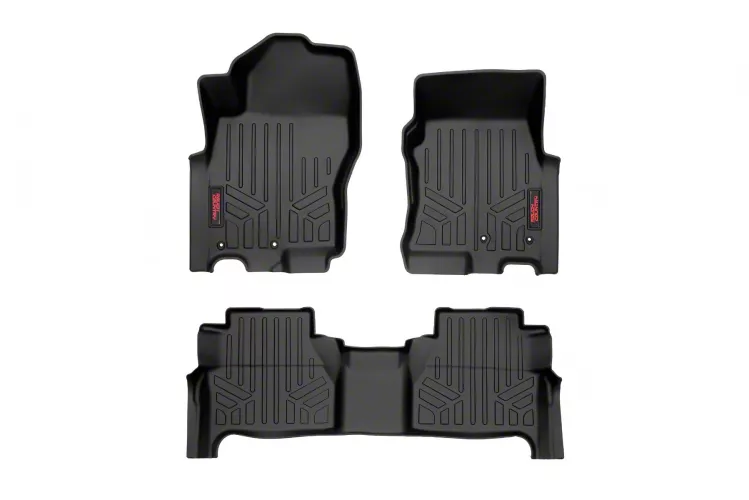 Seamless Shield. Preserve your Frontier Crew Cab's interior with Rough Country Heavy Duty Front and Rear Floor Mats. Engineered for durability, these mats shield against spills and dirt, maintaining your vehicle's cleanliness and value. The trouble-free installation process ensures a seamless fit, while the vehicle-specific fitment guarantees compatibility.