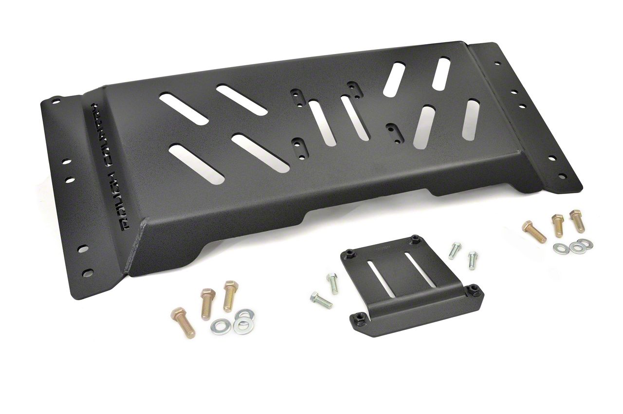 Superior Protection. The Rough Country High Clearance Skid Plate will work hard to protect your Wrangler's transmission and undercarriage. This skid plate will replace your old, worn-out factory one to provide optimal protection against road and trail hazards. The tough belly pan keeps your vehicle's underside safe as the pronounced lip guards against rocks, dirt and other debris.