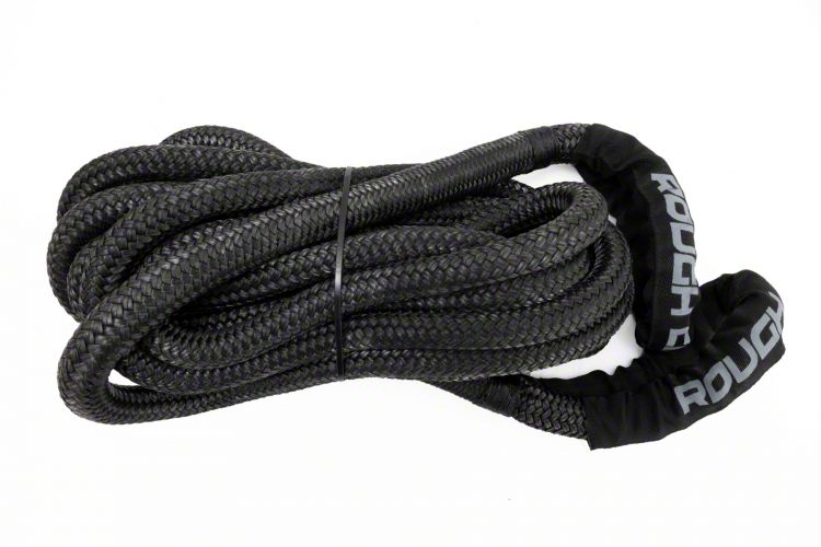 Reliable Assistance. Be ready for anything with this Rough Country 1-Inch x 30-Foot Kinetic Recovery Rope; 30,000 lb. on your off-roader. Designed for intense and demanding recovery operations, this rope can handle the heaviest of trucks, SUVs, cargo, items and people. With its strong build, you are sure to complete any task on the trail.