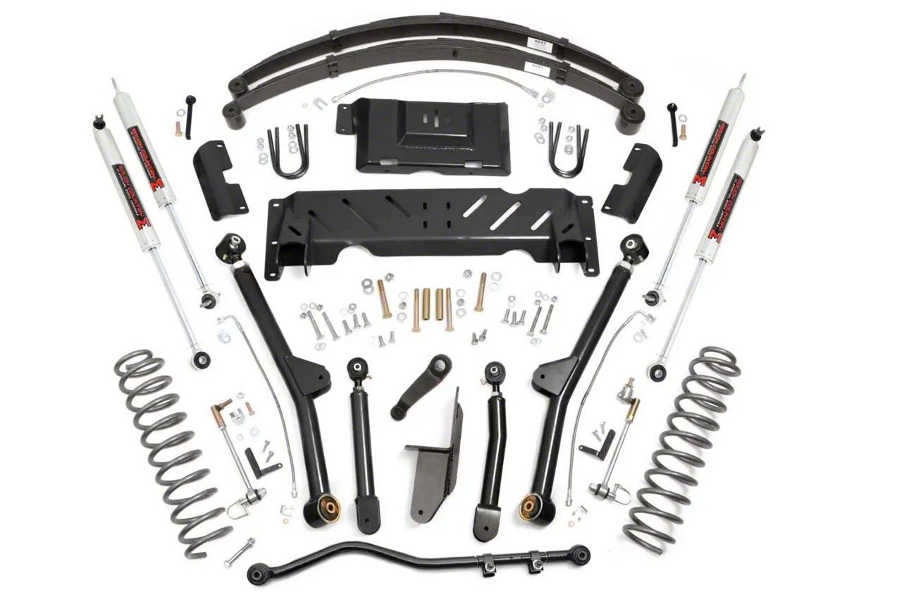 Durable and Reliable Design. Constructed from premium steel, the Rough Country 4.50-inch Long Arm Suspension Lift Kit is built to withstand demanding off-road conditions. The durable design ensures long-lasting performance, while the rear leaf springs provide superior ride quality. The M1 monotube shocks offer improved damping, enhancing handling and stability. The precision engineering guarantees a perfect fit and easy installation, offering both enhanced performance and reliability.