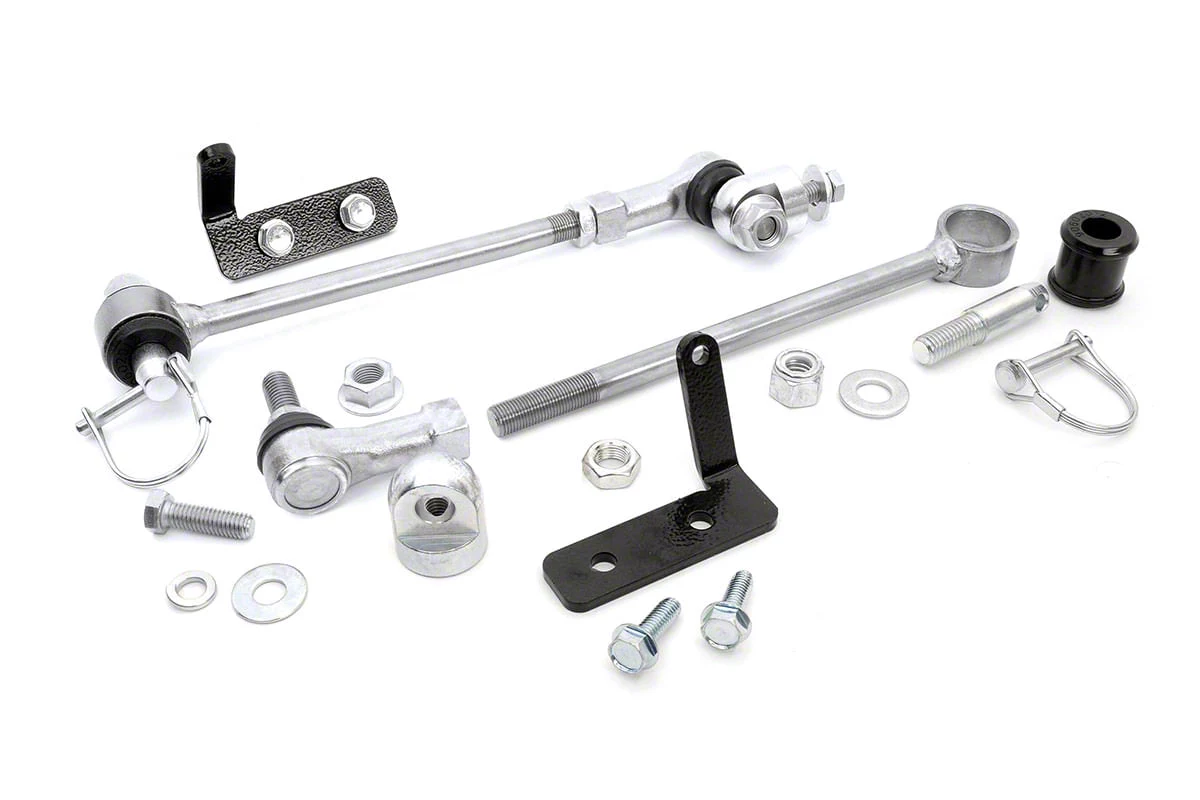 Enhanced Off-Road Performance. The Rough Country Quick Disconnect Sway Bar Links are designed to provide greater off-road articulation for Jeep Cherokee XJ models with a 3.50 to 6.50-inch lift. These links feature a quick pull-off pin for easy transition to trail-ready performance, making them an essential addition for off-road enthusiasts.
