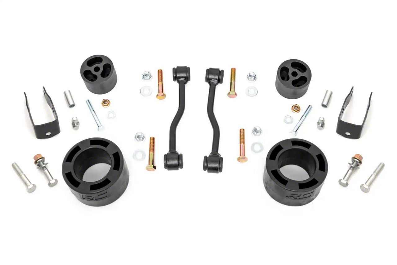 Improved Vehicle Stance and Ground Clearance. The Rough Country Leveling Kit offers a front leveling of 2.5 inches, allowing for a more balanced stance and the installation of larger tires up to 35 inches. This kit increases ground clearance, providing better off-road capability and a more aggressive look for your Jeep Gladiator.