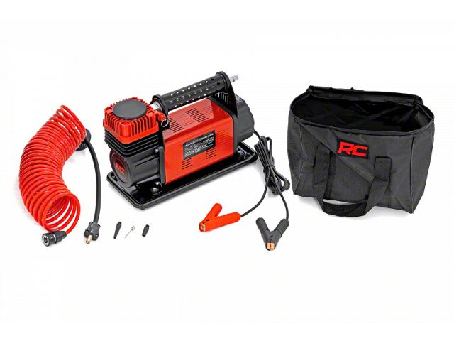 Quality Air Compressor Kit. Keep air in case of an emergency with the Rough Country Air Compressor with Carrying Case. This air compressor delivers a max pressure of 150 PSI and comes with a heat protection circuit for the performance you crave.