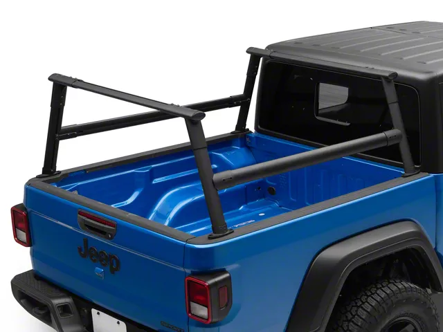 Corrosion Resistant Durability. The Rough Country Bed Rack is a heavy-duty rack designed for all 2020-2025 Jeep Gladiator JTs. This rack is constructed from durable steel and finished with a matte black powder coat for maximum durability and corrosion resistance. The design of the bed rack is engineered to provide additional storage space and versatility, making it an excellent choice for off-road enthusiasts, overlanders, and anyone in need of additional cargo-carrying capacity.