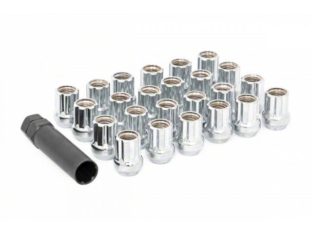 Good Looking Style. Whether you are running your factory rims or a set of oversized wheels and tires, these Rough Country Chrome Open End Spline Style Lug Nuts are a great way to add a little extra styling to your truck. This Kit contains (24) Lug Nuts and (1) socket key.