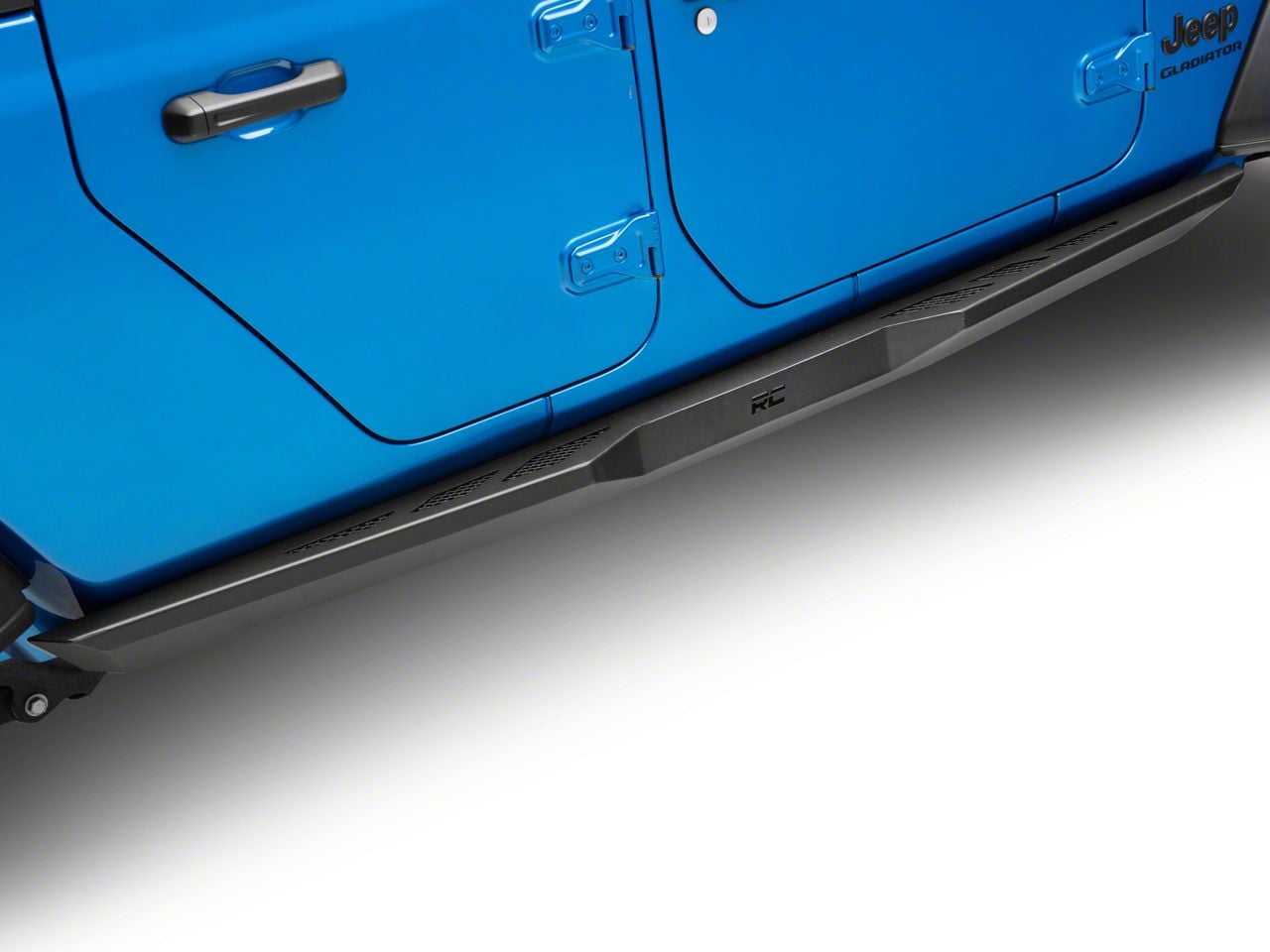 Application. The Rough Country Heavy Duty Rock Sliders in Flat Black suits all 2020-2025 Jeep Gladiator JT models.