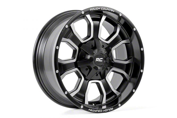 Rough Country One-Piece Series 93 Gloss Black Machined Wheel; 20x9. Enhance your vehicle's look with the Rough Country One-Piece Series 93 Gloss Black Machined Wheel. This premium wheel adds a touch of elegance and class to your vehicle, complementing its sophisticated aesthetic.