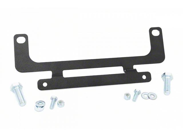 Rough Country has Products to Help. Most front winch plates and winch bumpers need to use the space previously allotted for the front license plate. This Fairlead License Plate Mounting Bracket from Rough Country keeps both in the center of your vehicle with a clean, simple, bolt-on product. This keeps you legal while allowing normal winch operation without the need to move anything before winching.Â