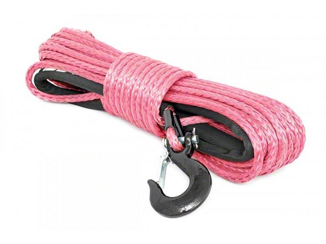 By Rough Country. Be well prepared in case of any emergency stuck situations on the trails with the Rough Country Synthetic Winch Rope; Pink. In a playful pink color, this winch rope has a 16,000-pound rated break strength, measuring 85 feet long with a 3/8-inch diameter.