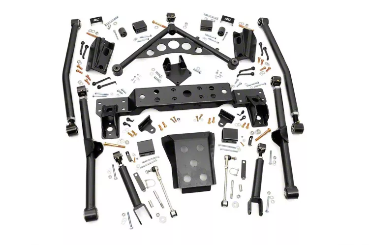 Commanding Stance. Boost your vehicle's capabilities with Rough Country's 4-Inch Long Arm Upgrade Kit. This kit dramatically increases ground clearance, offering an aggressive, commanding stance for your 1999-2004 4WD Jeep Grand Cherokee WJ. It includes durable, 0.25-inch-thick crossmembers and OEM-like rubber bushings, providing an ideal mix of robustness and ride comfort.