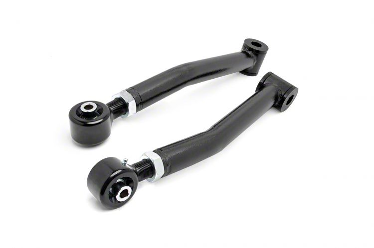 Precision Axle Positioning. The Rough Country X-Flex Front Lower Control Arms feature a highly beneficial adjustable length design, providing the capability for precise axle positioning. This adjustability is particularly critical for vehicles that have been lifted, as it allows for fine-tuning of the axle's location within the wheel well. Furthermore, these control arms enable accurate pinion angle adjustments, which are essential for optimizing driveline angles.