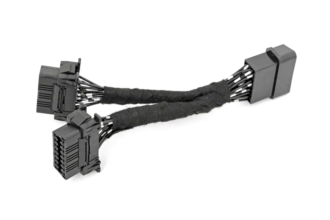Versatile Connectivity. The Rough Country 2 to 1 OBDII Connector allows you to use multiple accessories simultaneously without hassle. It eliminates the need to access door panels and locate factory wires, making it a convenient solution for expanding your vehicle's capabilities.