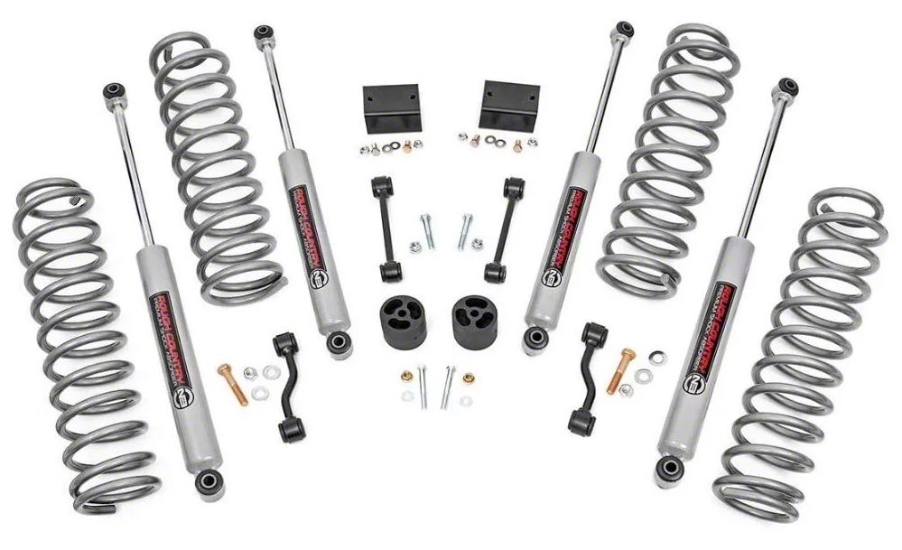 Aggressive Stance and Improved Stability. Boost your JL’s stance and handling by means of the 2.50-Inch Spring Suspension Lift Kit with Premium N3 Shocks. Rough Country includes high-quality coil springs, N3 shock absorbers, suspension links, sway bar links, and bump stops to ensure an aggressive performance, excellent ride quality, and enhanced ground dynamics.