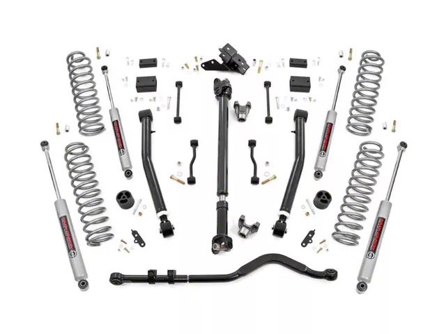 Unleashes Real Off-Roading Capabilities. While your Wrangler is built to tackle rugged trails, you can still enhance its off-roading capabilities by installing this Stage 2 Rough Country 3.50-Inch Suspension Lift Kit with Adjustable Control Arms and Premium N3 Shocks. This suspension lift kit provides an additional ride height of 3.50 inches, enabling your Jeep to easily drive over obstacle-filled paths. Moreover, with the increased ground clearance, your vehicle’s underbody will reduce its risk of getting damaged.