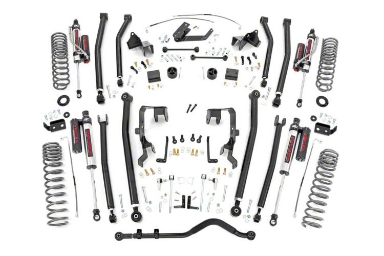 Top Performance Lift Kit. When you’re ready to take your Wrangler JK’s performance to the next level, you’ll need a suspension lift kit that’s up to the task. The Rough Country 4-Inch Long Arm Suspension Lift Kit With Vertex Reservoir Shocks features components that are designed to provide your Jeep with the capacity to negotiate more aggressive off-road trails, all while keeping ride quality at near-factory level. Additionally, this lift kit’s 4 inches of front and rear lift allows you to install 35-inch wide tires that help improve performance as well as looks.