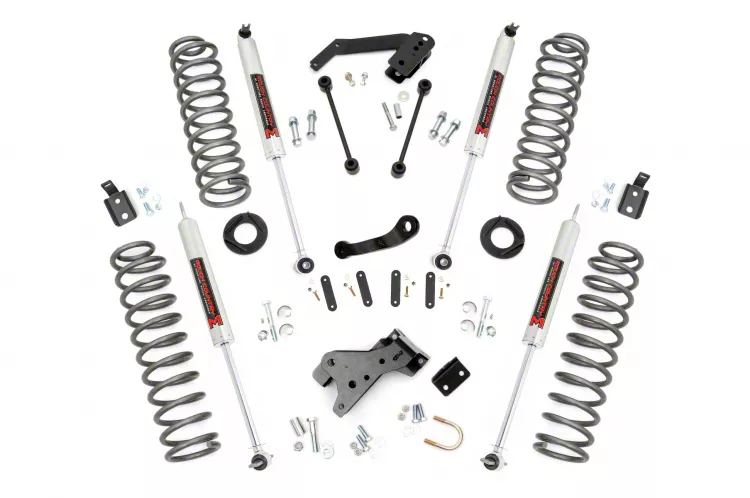 Application. This Rough Country 4-Inch Suspension Lift Kit with M1 Monotube Shocks fits all 2007-2018 Jeep Wrangler JK 4-Door Models.