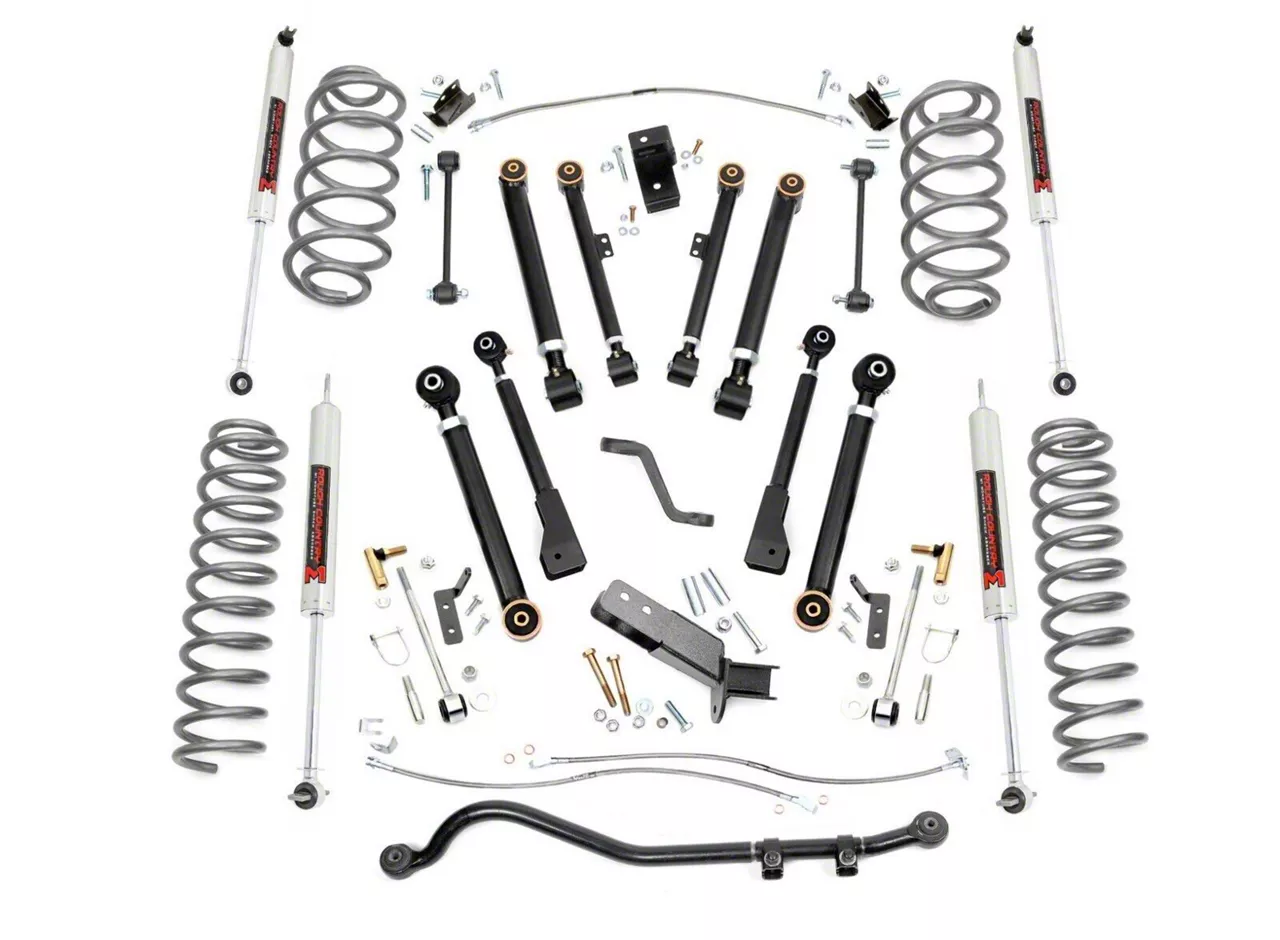 Stabilized Driving. Experience better control and more stability with this Rough Country 4-Inch X-Series Suspension Lift Kit with M1 Monotube Shocks on your Jeep Wrangler. Sporting precision machining and quality machined hardware, it reinforces your underside axles and maintains the optimal angles of your suspension for more consistent smooth maneuvering.