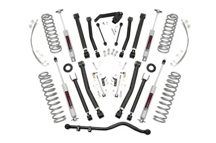 What's in the Kit. The kit includes front and rear lifted coil springs, adjustable control arms and stainless steel brake lines, coil correction plates, sway bar links, quick disconnects and an adjustable track bar. Made of heavy-duty materials, each component in the kit can withstand the impacts of rough, off-road use.