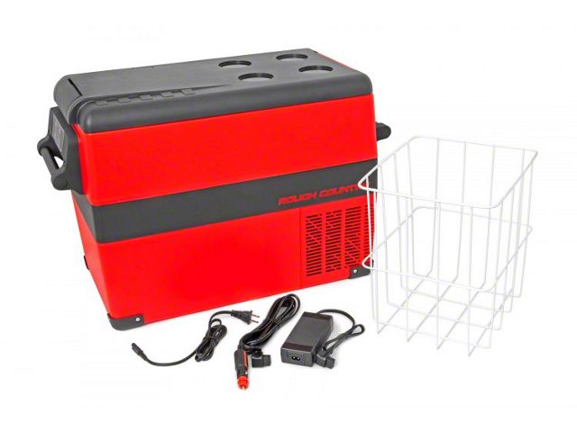 Ice-Cold Drinks Anywhere. Keep your drinks and food cold even in the remotest locations with this Rough Country 45 Liter Portable Refrigerator/Freezer. With this portable fridge in your vehicle, never have to worry about not having an ice-cold drink or food spoiling even if you're in the middle of a desert expedition.