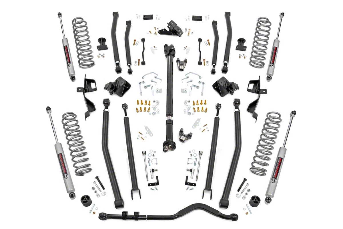 Application. The Rough Country 6-Inch Long Arm Suspension Lift Kit with N3 Shocks fits all 2018 to 2023 2.0L or 3.6L Jeep Wrangler JL 4-Doors, Excluding Rubicon Models.