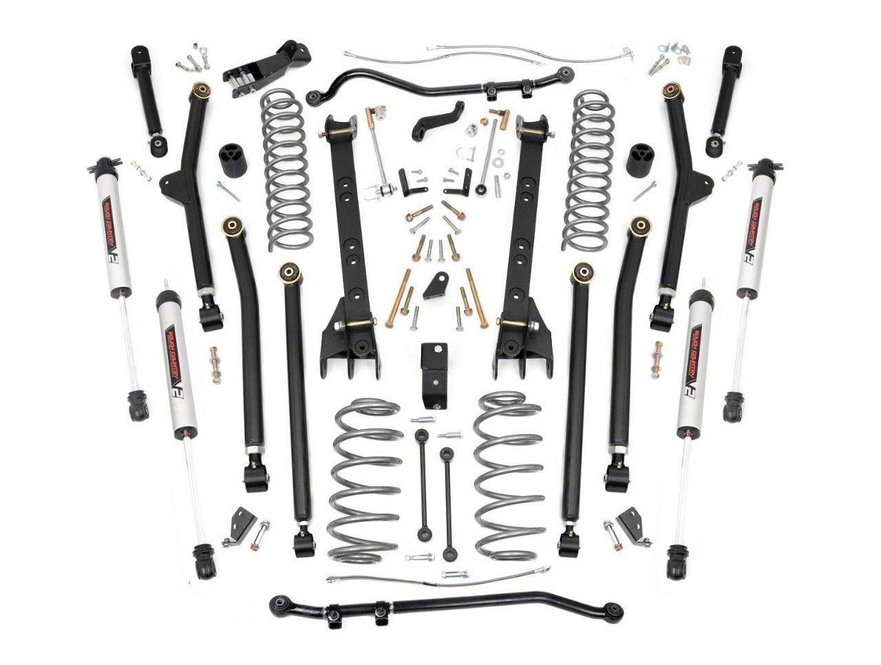 Advanced Suspension Upgrade. The Rough Country 6-Inch Long Arm Suspension Lift Kit with V2 Monotube Shocks is designed to provide superior off-road performance, stability, and ride quality for your Jeep Wrangler TJ. This kit offers substantial lift and articulation, enhancing clearance for larger tires while maintaining on-road comfort and control.