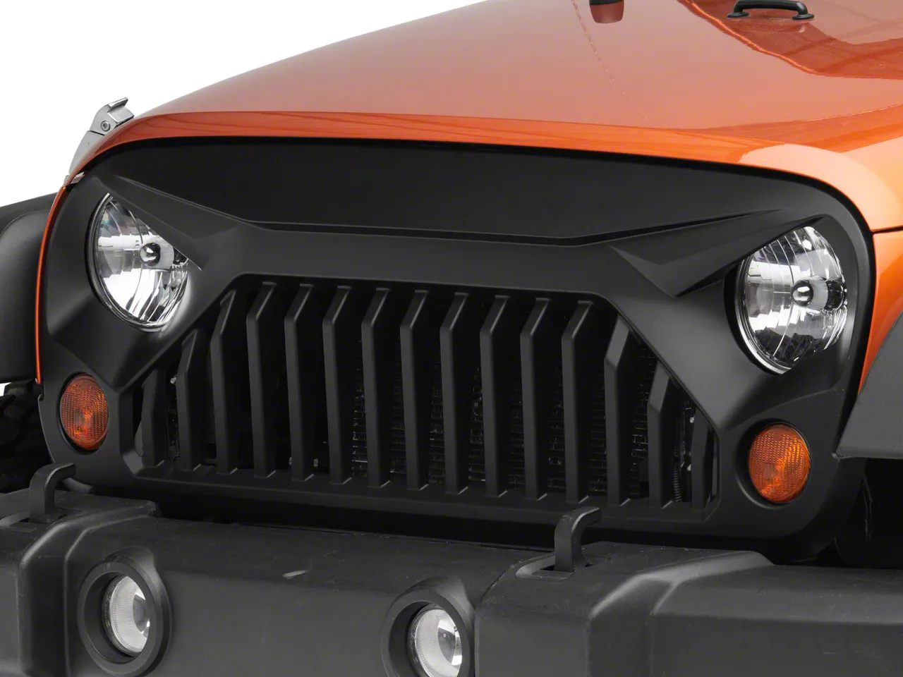 Application. This Matte Black Rough Country Angry Eyes Grille will fit 2007-2018 Jeep Wrangler JK models.
