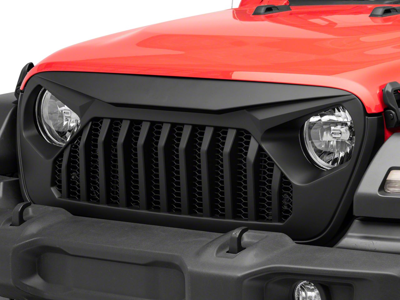 Application. The Rough Country Angry Eyes Replacement Grille fits all 2018-2026 Jeep Wrangler JL models, excluding the EcoDiesel.