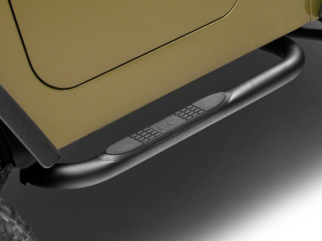 Application. These Rough Country Cab Length Nerf Side Step Bars fit all 1987-2006 Jeep Wrangler YJ and TJ models, excluding Unlimited.