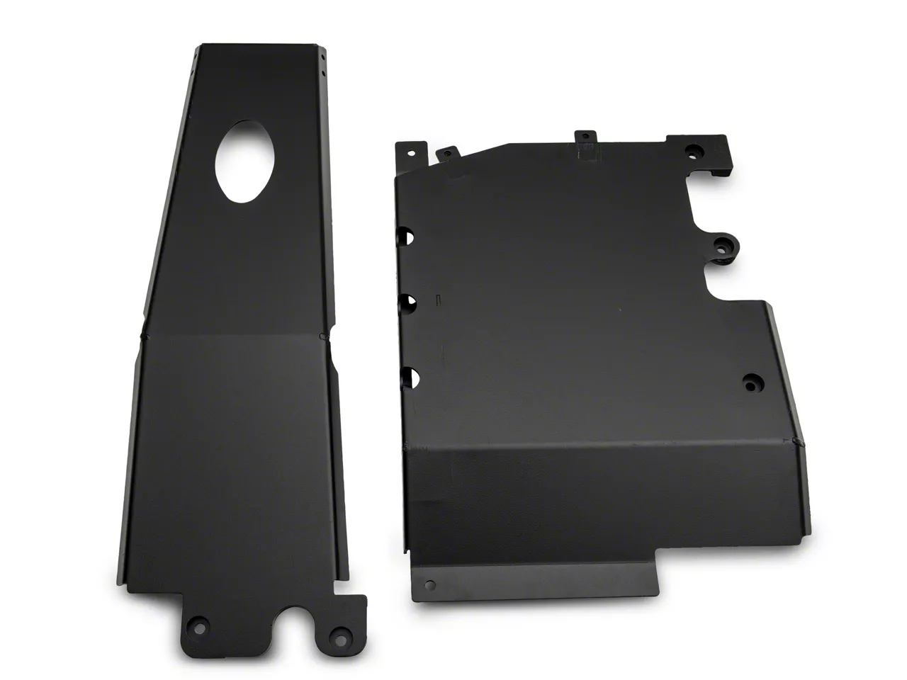 Made From Heavy-Duty Steel. Featuring 0.1875-inch thick steel construction, the Engine and Transfer Case Skid Plates won’t be so easily damaged by the various trail debris and obstacles you’ll meet on the off-road trails. What’s more, they feature durable protective panels and a resilient black powder coated finish for a strong and long-lasting performance.