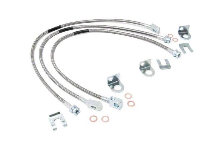 Installation. These Rough Country Front and Rear Stainless Steel Brake Lines include all the necessary brackets and mounting hardware. Basic hand tools are all that's needed, and installation should take about 2 hours.
