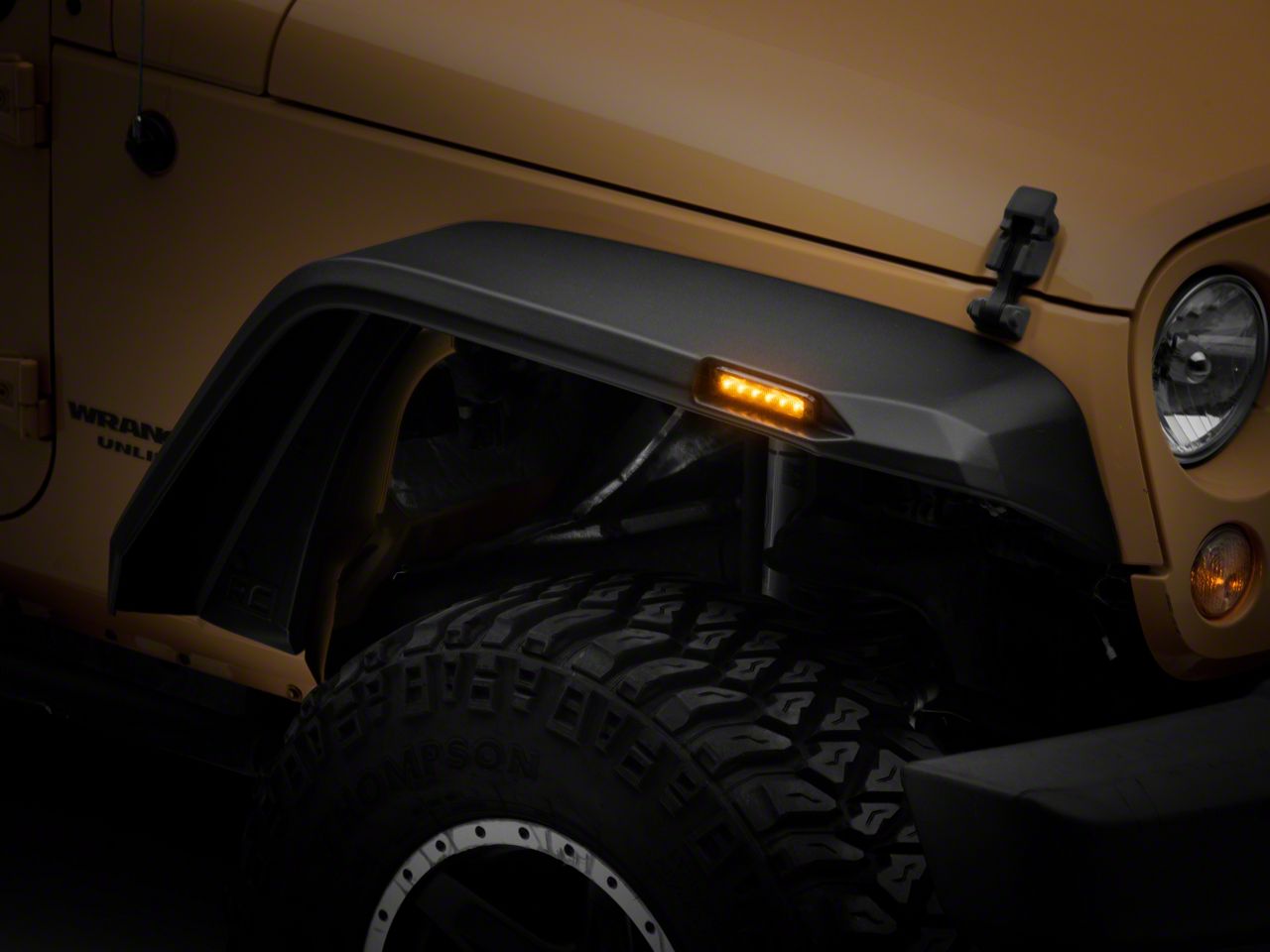 Flexible Polymer Construction. Rough Country's High Clearance Fender Flares are made of a flexible UV Stable Black TPO polymer that can handle on or off-road conditions. This material is both lightweight and weather resistant. The UV treatment layer protects against sun aging and removes chalking. Each flare set comes with two front marker lights, each with six intense LEDs to ensure your visibility at night.