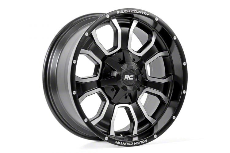ExtremeTerrain no longer carries the Rough Country 93 Series Gloss Black Machined Wheel; 20x10; -18mm Offset (18-26 Jeep Wrangler JL). Please check out Jeep CJ7 Wheels & Tires for 1976-1986 Wrangler for an updated selection.