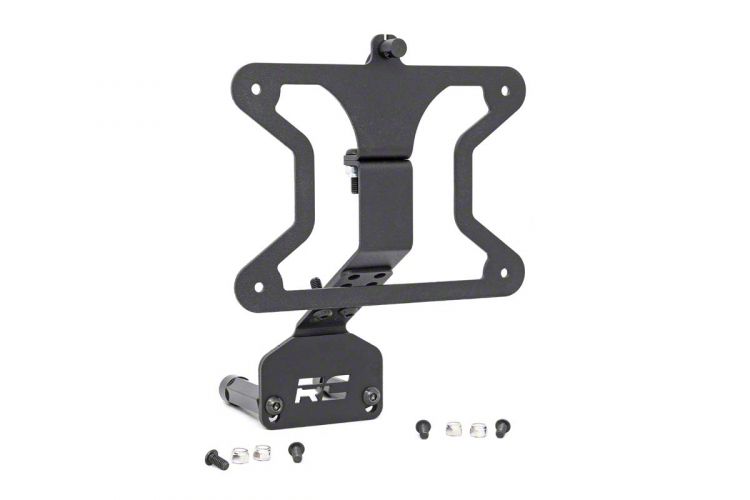 Improve License Plate Visibility. If the rear bumper you’ve upgraded to does not have provisions for mounting your license plate, you need the Rough Country License Plate Adapter. This adapter is designed to mount onto your spare tire, setting your rear license plate at a more visible location. Additionally, this component includes an adjustable arm, enabling you to fine-tune its position, as well as an LED tag light to keep your license visible.