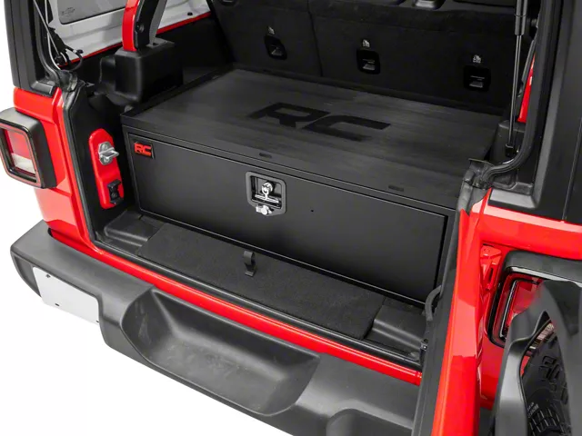 Application. This Rough Country Metal Storage Box with Slide Out Lockable Drawer is designed for all 2018-2024 Jeep Wrangler JL models. This does NOT fit models with Factory Alpine Sub.