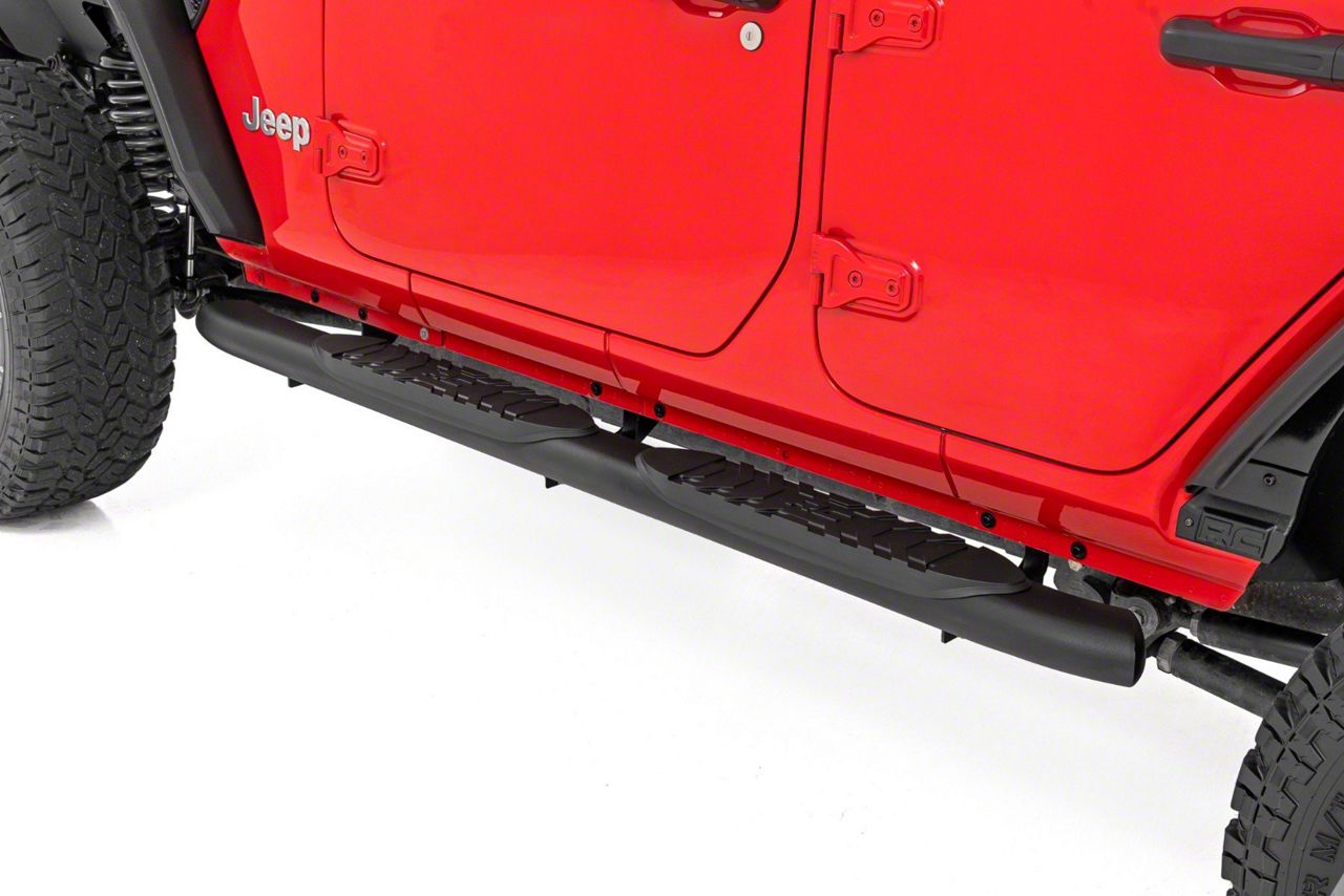 Application. These Rough Country Oval Nerf Side Step Bars fit all 2018-2026 Jeep Wrangler JL 4-Door Models.